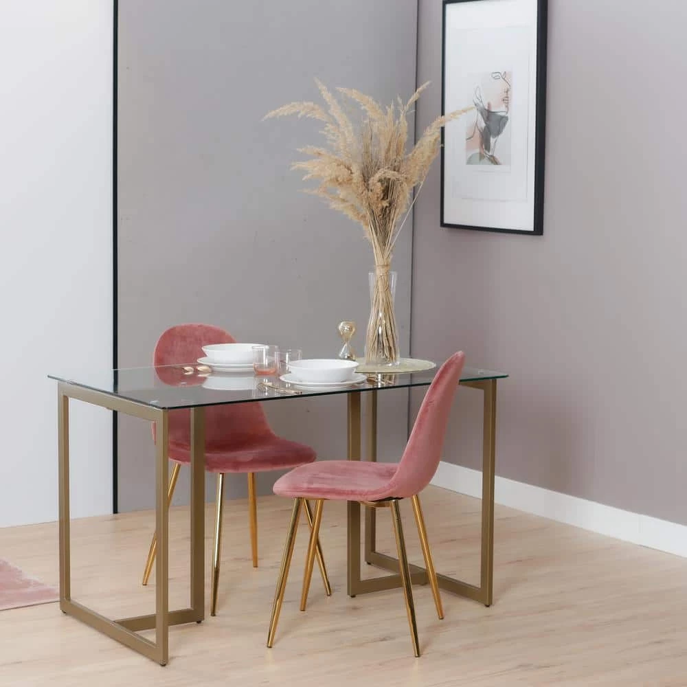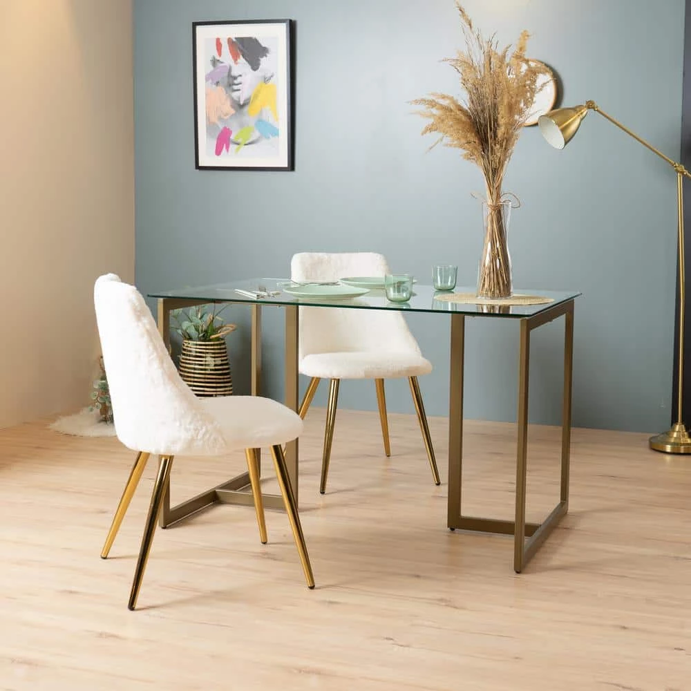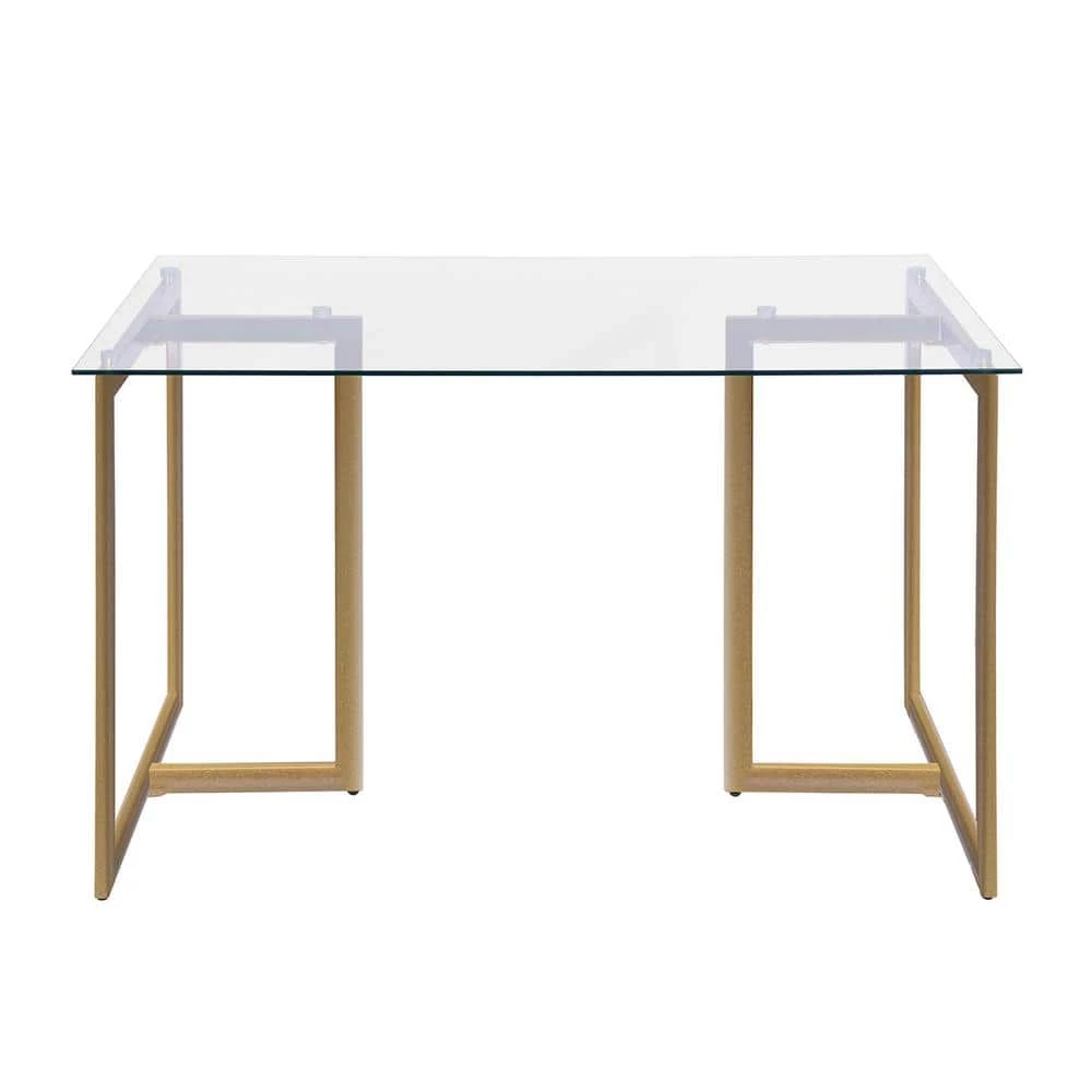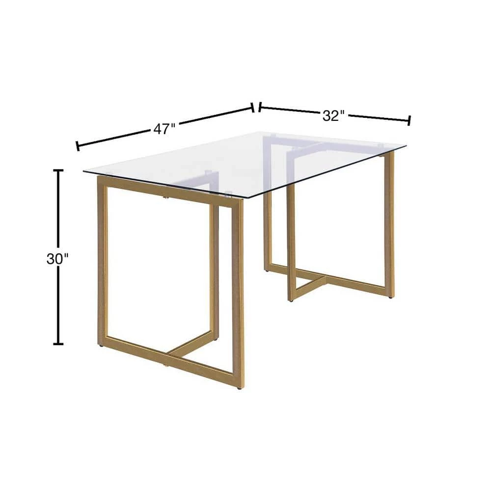 This modern-inspired dining table features a clean-lined silhouette for a contemporary look that seats up to 4 guests. It has a rectangular tempered glass top, so it’s easy to wipe up accidental spills. Plus, it rests on a double trestle base with an open tripod construction. This structure gives you plenty of legroom, so your dining room feels light and airy when guests are over for brunch or a holiday dinner. The iron frame is painted with an elegant black finish for some glam style that makes a statement.