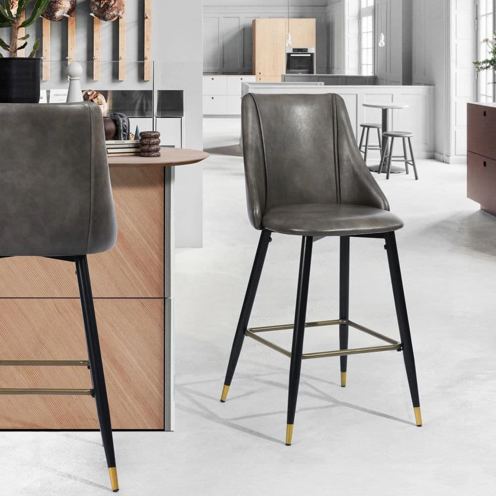 This 2-piece set of counter stools add a mid-century modern feel to your kitchen or den with its sleek design and splayed legs. These stools are built with a steel frame, and their foam-filled seats come upholstered in your choice of fabric. We love that these have built-in footrests for added support. These stools have a 25.8” seat height, so they neatly tuck away under your bar or island when not in use. Plus, they come with plastic glides on their feet to help protect your floors from scrapes and scratches.