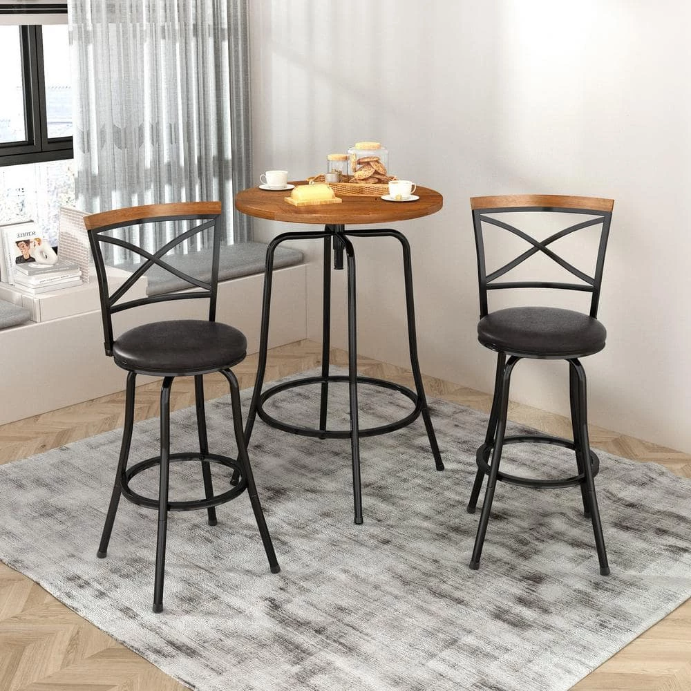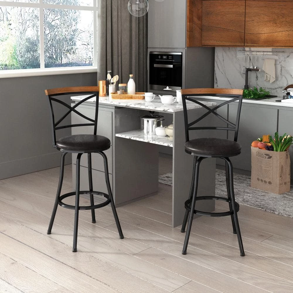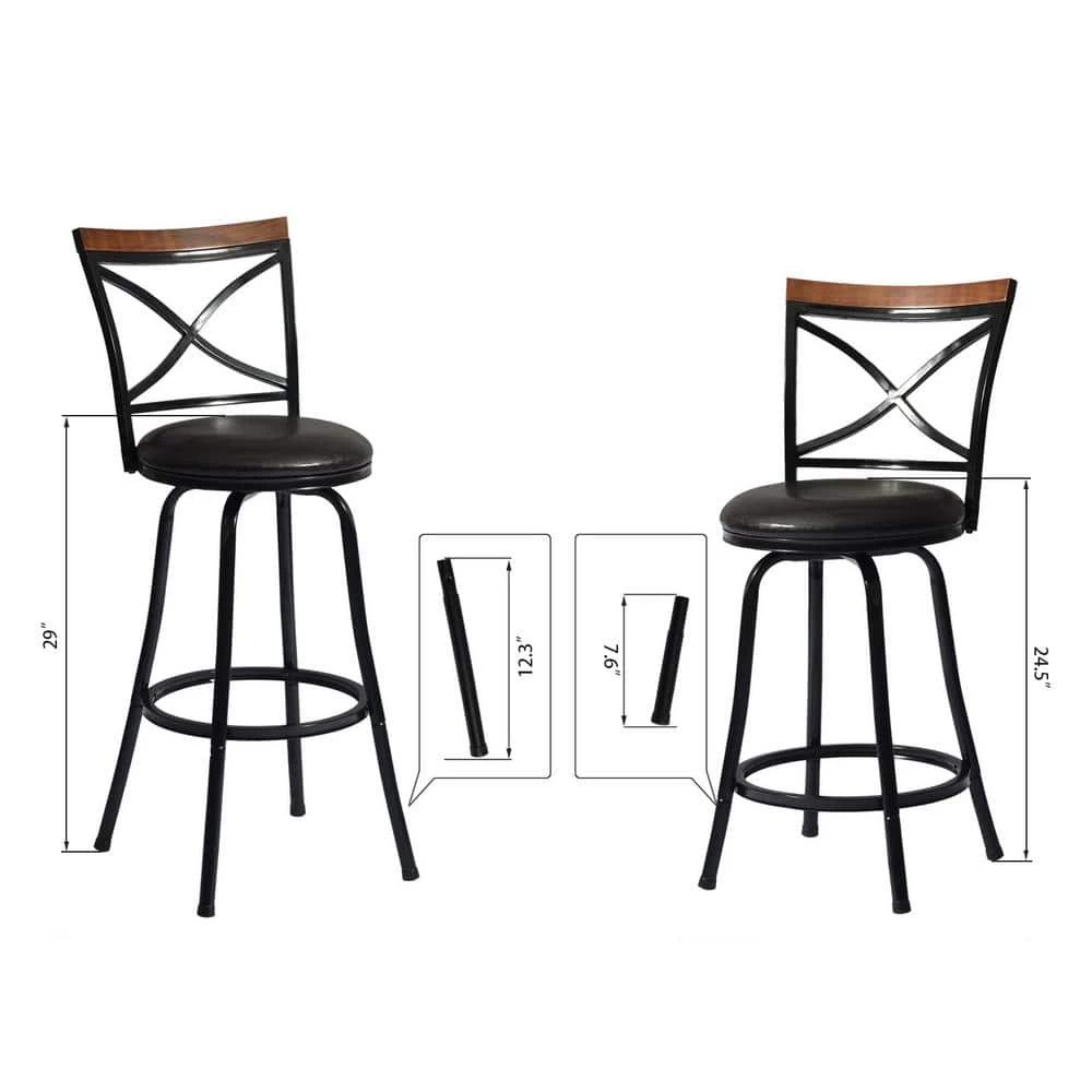 Add a touch of elegance to any indoor with these mordern stylish counter barstools. The set of 2 bar stools features adjustable legs, which four leg extensions allow you to adjust the stool height from counter height (24 inches) to bar height (29 inches). The sturdy backrest consists of an attractive metal design.Soft cushion seats are generously padded and the footrest ring offers natural support. Swivel smoothly rotates a full 360 degrees with 250 lb. These barstools are perfect for the kitchen, bistro, coffee house, and bar.