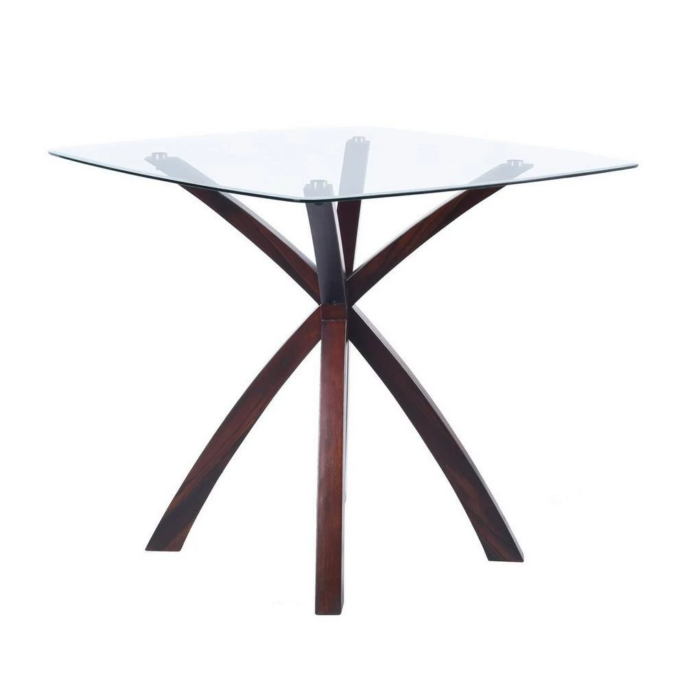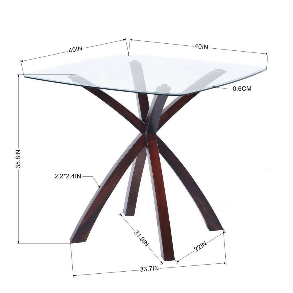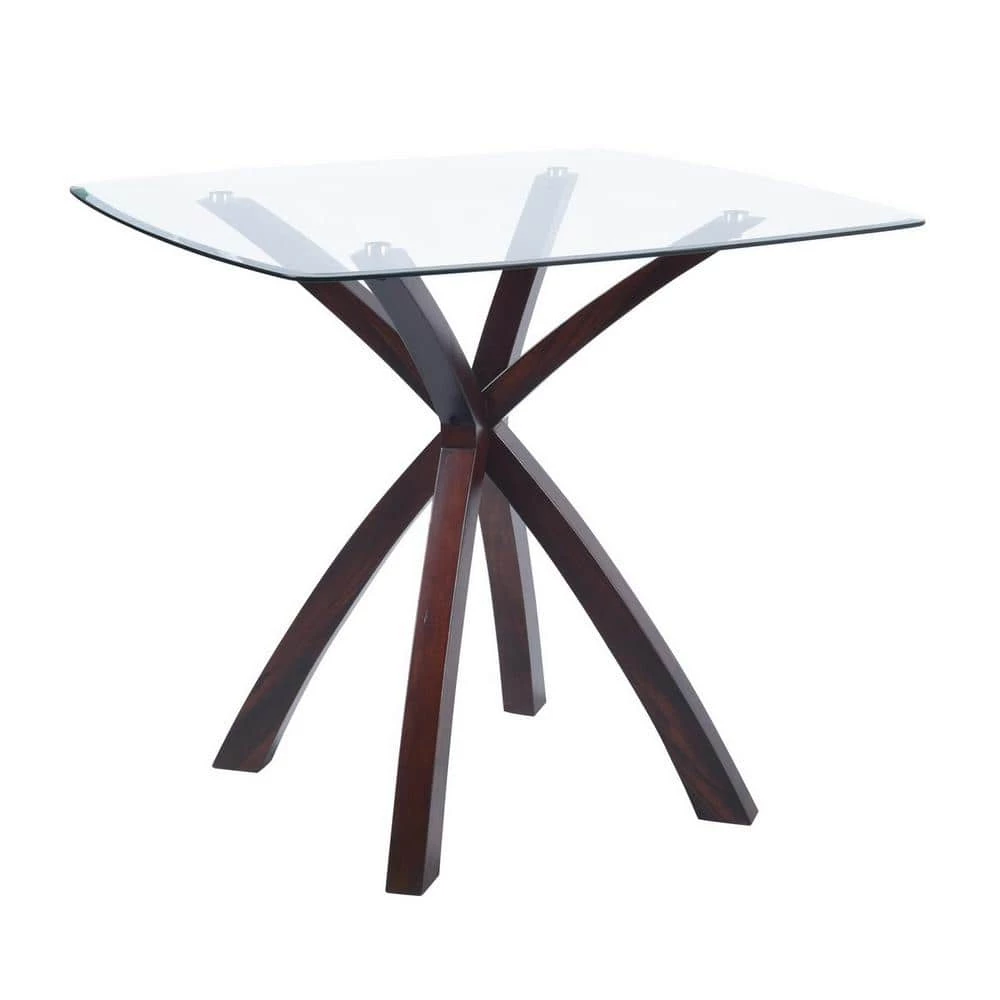 Shock and awe you’re friends and family when you reveal your new majestic dining room table for the first time. This square dining table features a beautifully brown rich finish and clear glass top that brings attention to the ornate solid wood frame. A set of 4-crossed legs support the piece, adding even more regal appeal to the design and ensuring your home remains classy and stylish for every special occasion, from elegant dinner parties to family meals.