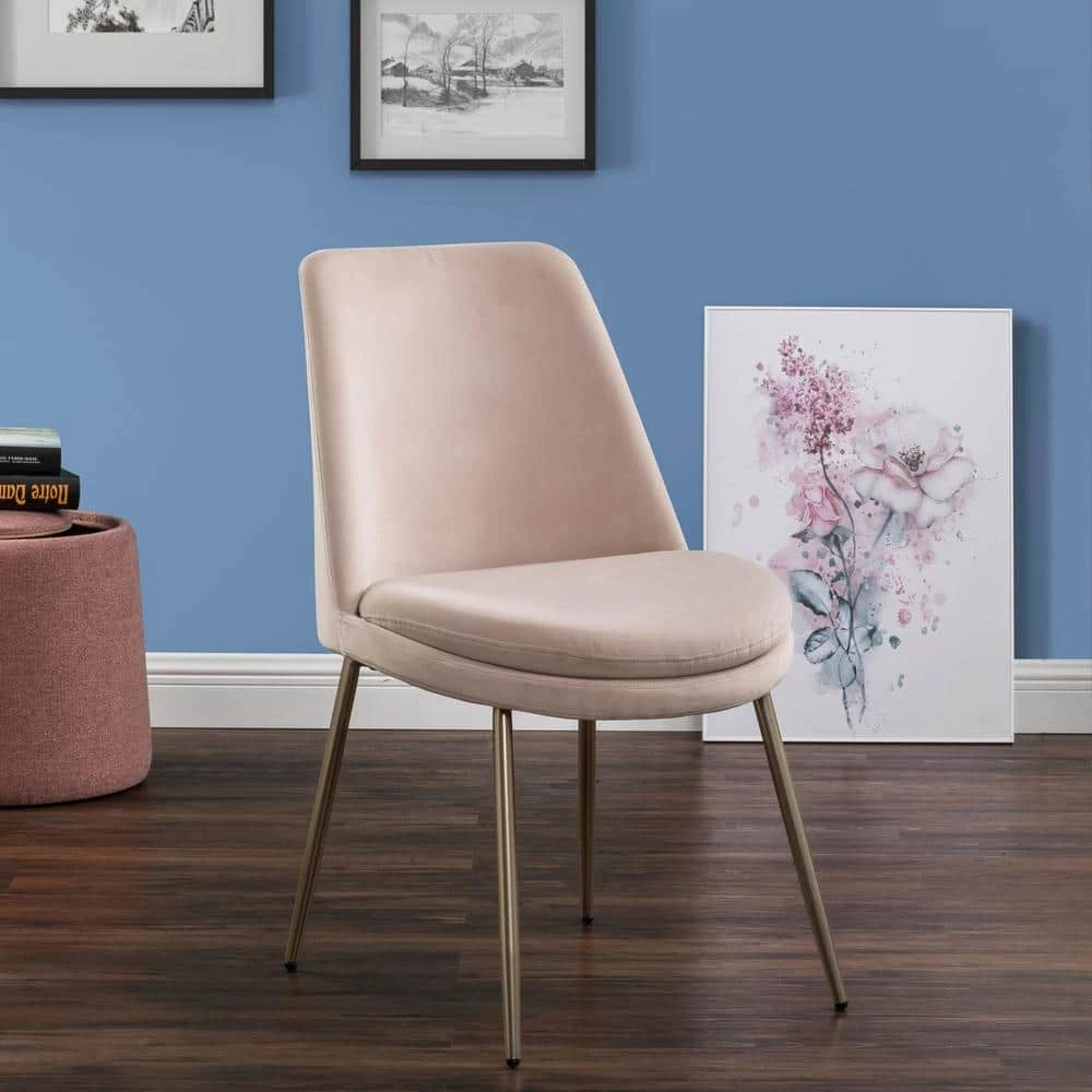 Give a touch of elegance to your dining room with this Upholstered Dining Chair. Designed in clean simple lines that allude to the mid-century decor, this chair is versatile and perfect for any style. Upholstered in your choice of color or leg color. It features a foam-padded seat for extra comfort, upholstered with soft velvet, sturdy metal legs with a golden finish. It assembles in seconds and it is lightweight and durable.