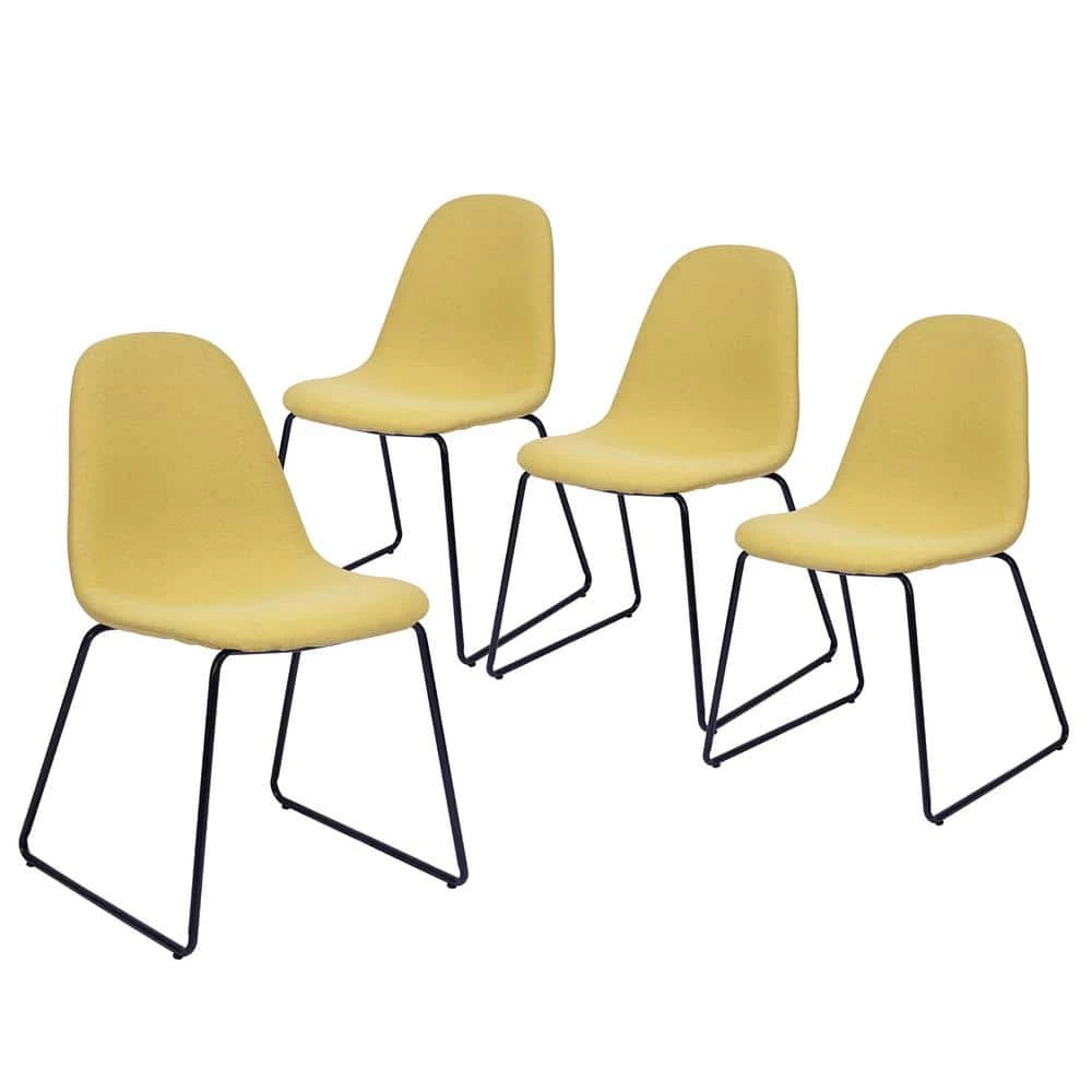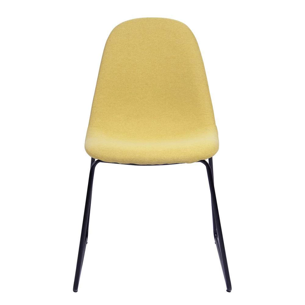 Create comfortable seating in the dining area or living area of your home with this chair. The thickly padded seat and back of this chair provide superior cushioning for leisurely hours of thoughtful conversation, while the powder-coated black finished metal legs provide stylish support to it. Pull this chair up to the writing desk for a touch of modern appeal or use it to offer guests extra seating during your next party.
