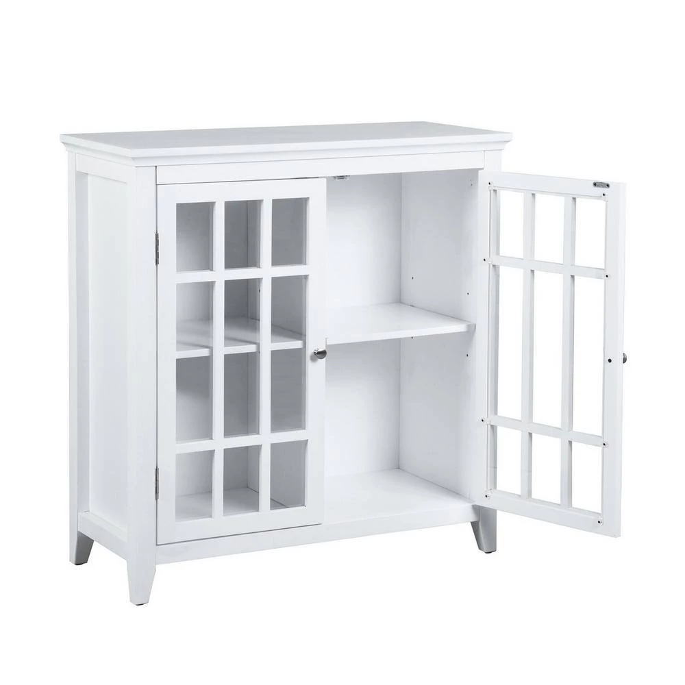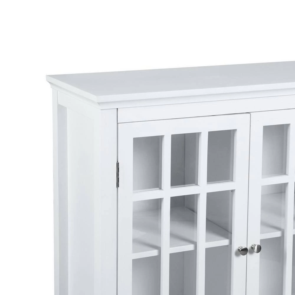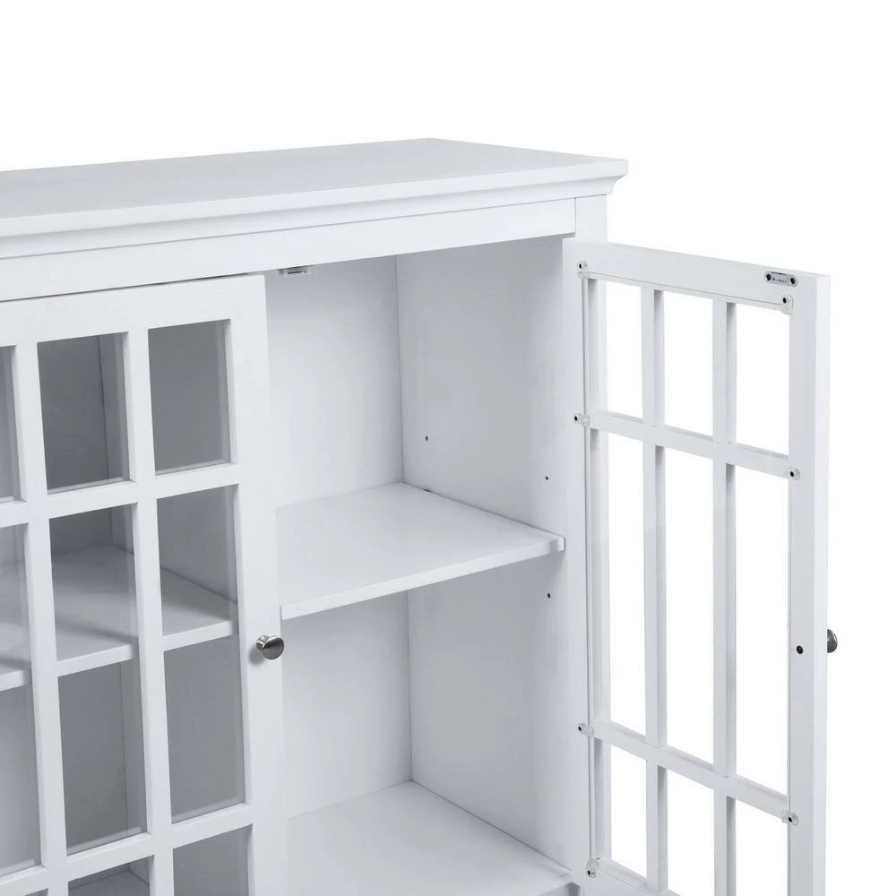 - There are three interior shelves inside the cabinet. It includes a large storage space to store dishware, cups, utensils, and more.