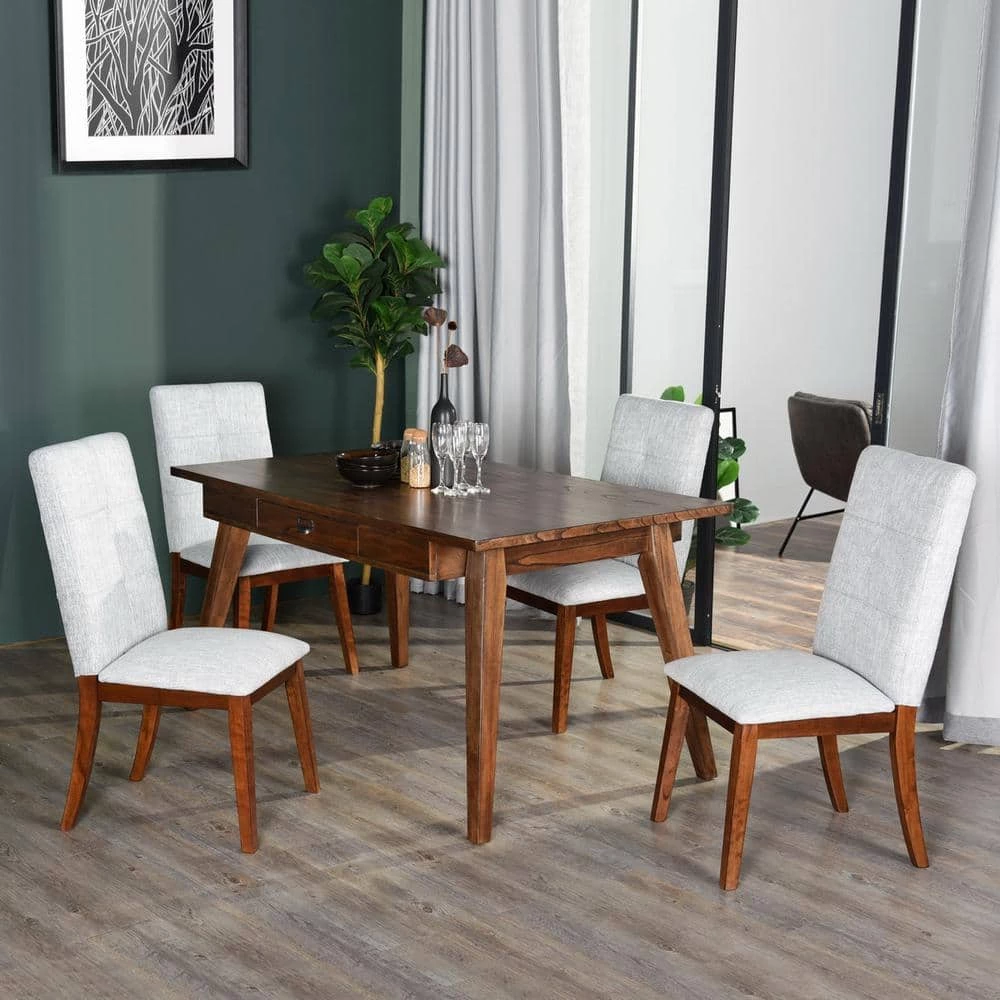 This fantastic dining table is a must for your dining room. Crafted with a streamlined structure this table is well-designed which can match different kinds of chairs. With this stylish desk, it takes minimal space to transform any area into a workplace. High-quality wood legs and an inlaid table surface dress up the profile. With a delicate semicircular handle, two flexible drawers can satisfy your daily storage need of small tableware.