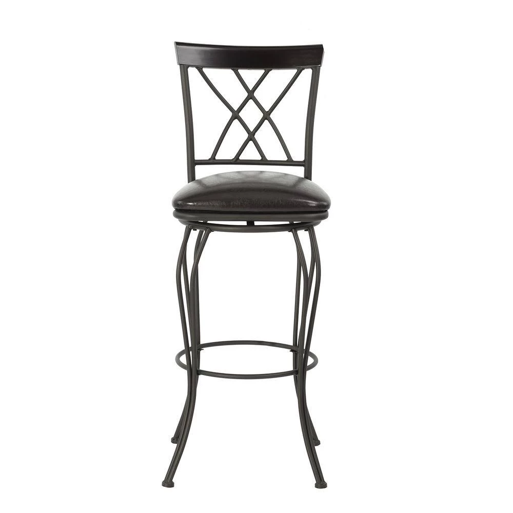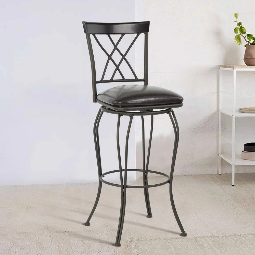 This barstool flaunts sweet juxtaposition with its simple, sturdy construction Ideal in a minimalist space. Its frame is made of Black PU Upholstery and metal. The four metal legs and round footrests make the base more stable and comfortable, and the high back and cushioned seats are designed to increase safety and comfort. It can be used in the store, the kitchen, the game room, the bar, the basement, the dorm or the attic.