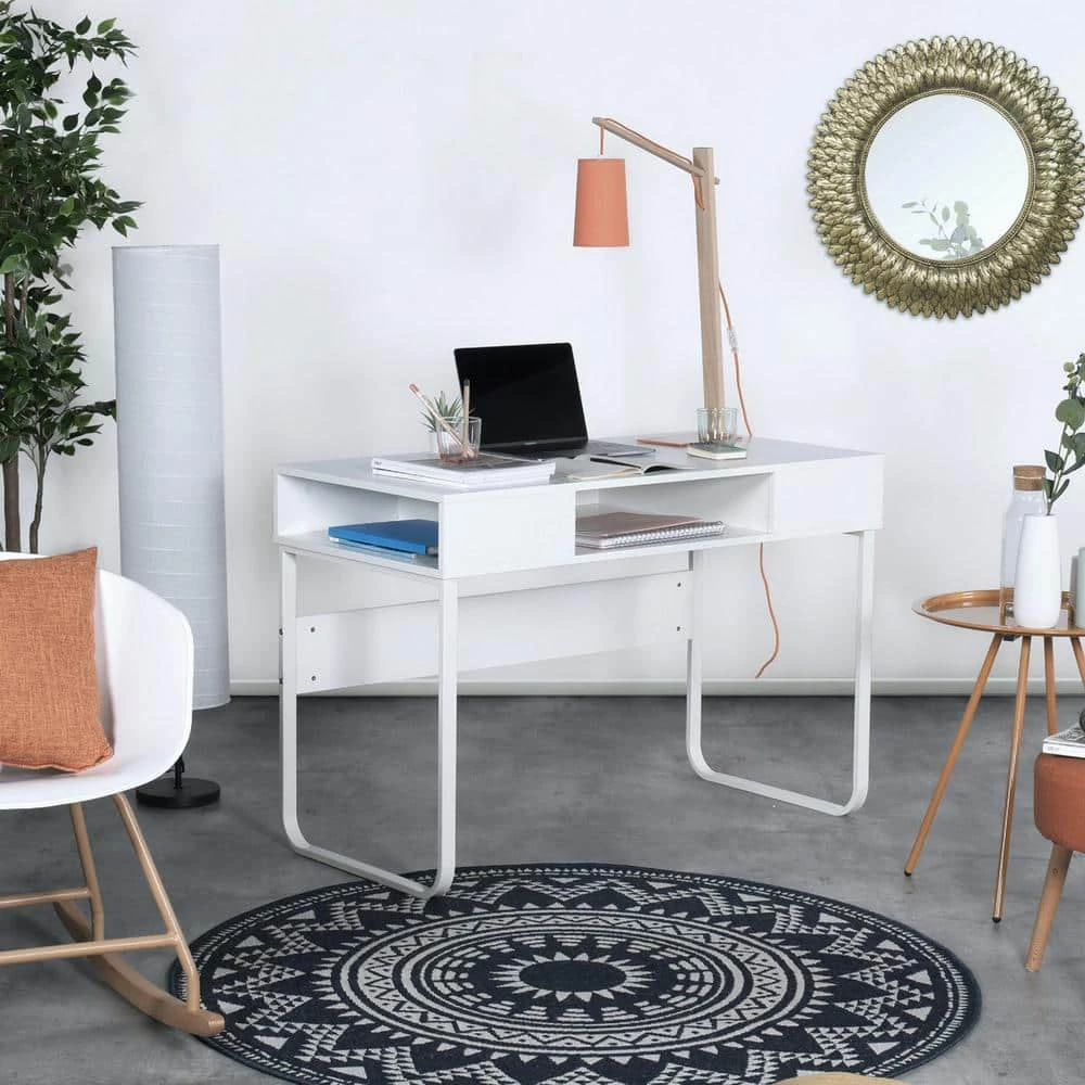 - Designer details: Add a touch of contemporary style to your home with this desk; Features finely wood grain vaneer finish in white